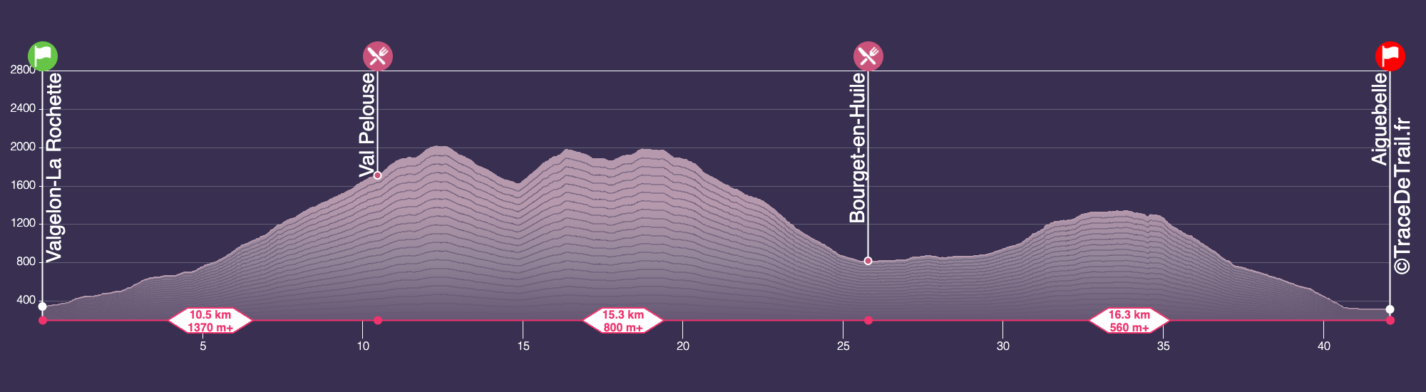 La dernière née des épreuves de l’Echappée Belle, un format Maratrail et un parcours 100% savoyard sur sentier ralliant Aiguebelle au départ de Valgelon-La-Rochette. Un tracé physique avec un dénivelé important offrant de jolis points de vues sur Belledonne, les massifs voisins ainsi que le Mont-Blanc. Vous parcourrez les crêtes de Val pelouse et du Grand chat, et traverserez les villages d’Arvillard et du Bourget-en-Huile !