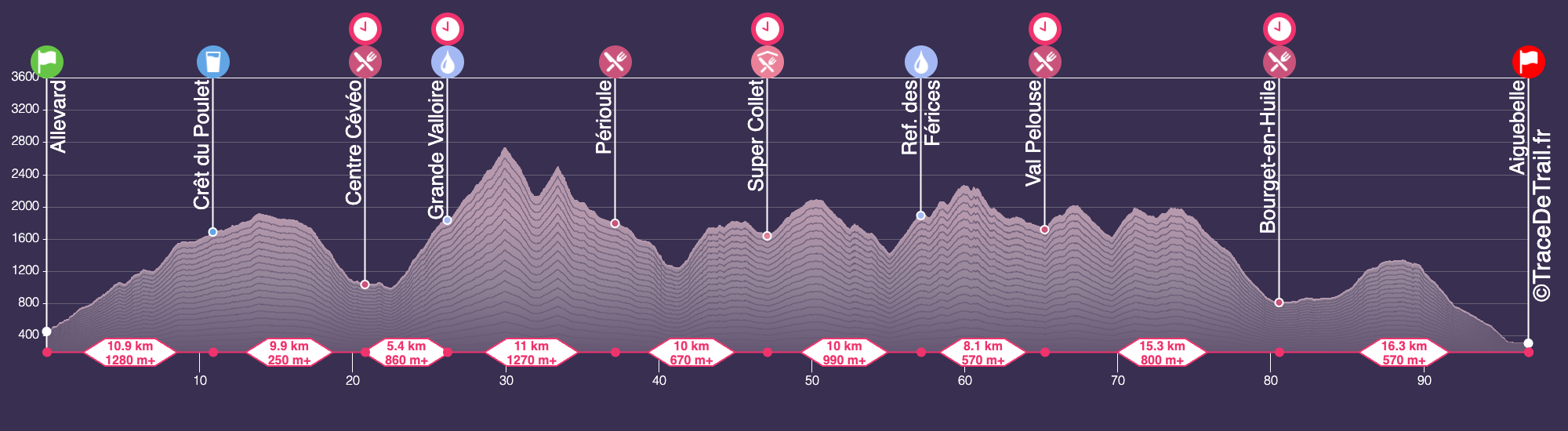 Pour les trailers désireux de s’essayer aux sentiers techniques de Belledonne, en solo, d’Allevard à Aiguebelle. Cette épreuve est beaucoup plus accessible que les 2 ultras. Il n’y a pas de zones hors sentiers, mais plutôt un festival de monotraces. Néanmoins l’étape Col de Claran-Fontaine Noire est technique, la progression y est assez difficile mais se fait sur ses 2 pieds ! La force de ce parcours est d’évoluer sur 4 crêtes principales à 2000m d’altitude et d’offrir un panorama unique sur toutes les Alpes et le Mont-Blanc depuis l’un des sommets phares du massif, la pointe de Rognier. Vous aurez aussi fait une incursion dans le versant Mauriennais !