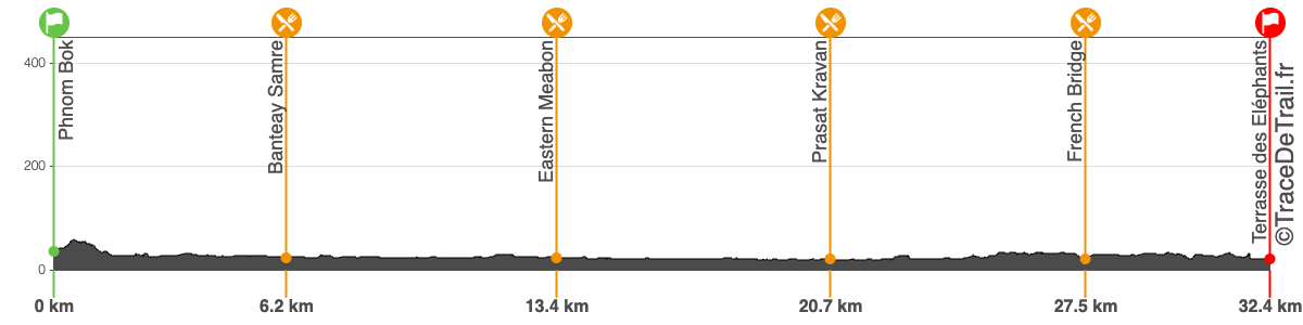 Cette épreuve se déroulera sur le site archéologique d’Angkor, dans la province du nord du Cambodge de Siem Reap. Ce Trail de 32 km sera couru sur piste, au travers des rizières et d'une nature de toute beauté sans oublier les traversées d’une multitude de petits villages avec en fond d’écran... les Temples d’Angkor.